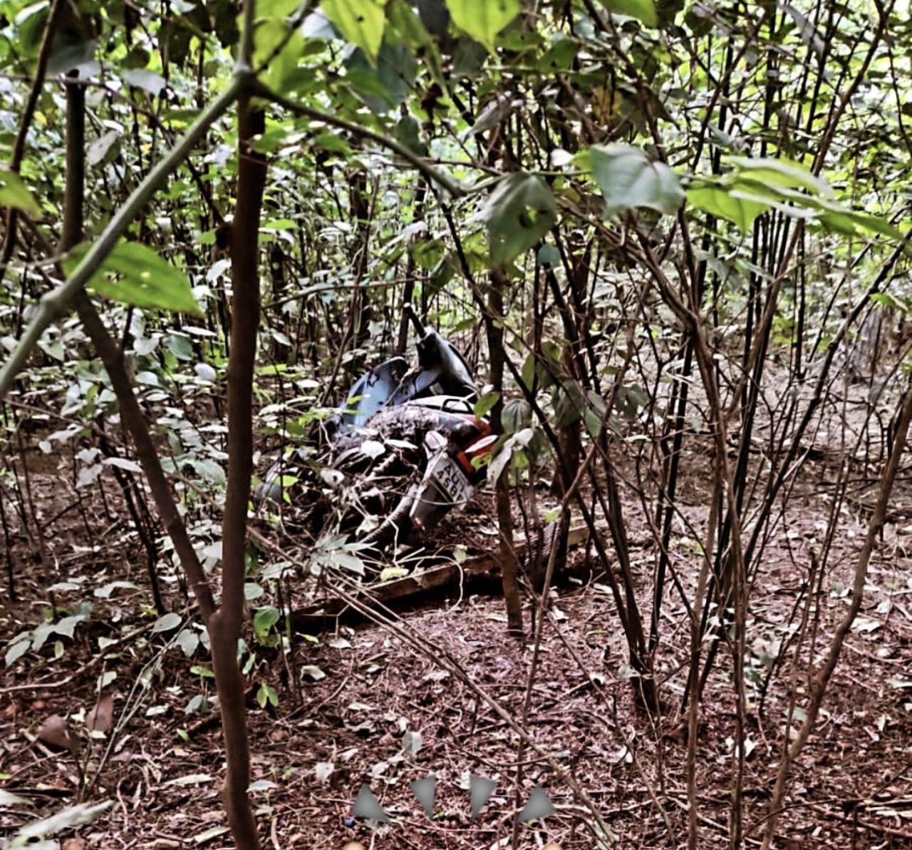 Conforme o noticiante, ele estava andando em uma trilha numa região de mata, que fica no final da rua, quando visualizou uma roda de moto e decidiu ligar para o 190.