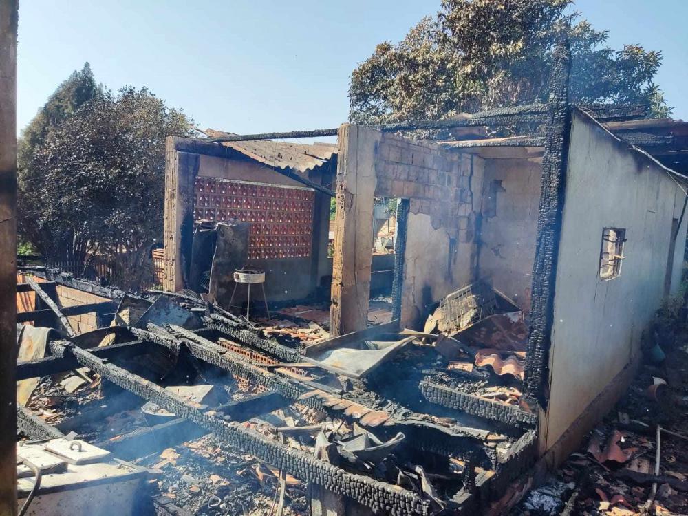 Duas equipes do Corpo de Bombeiros foram ao local com caminhões tanque de água, os quais já haviam extinguido o fogo na chegada da PM. A residência foi totalmente destruída pelo fogo.