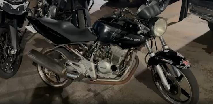 Com ele foram encontrados dois comprimidos de ecstasy e algumas gramas de maconha. A moto estava com a placa suprimida, sem retrovisores, silenciador de motor modificado e pneus gastos.