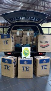Durante patrulhamento no interior do município de Guaíra, a equipe do BPFron localizou caixas de cigarros contrabandeados abandonados em uma área de mata. No total foram apreendidos 600 pacotes. O contrabando foi encaminhado aos procedimentos cabíveis.