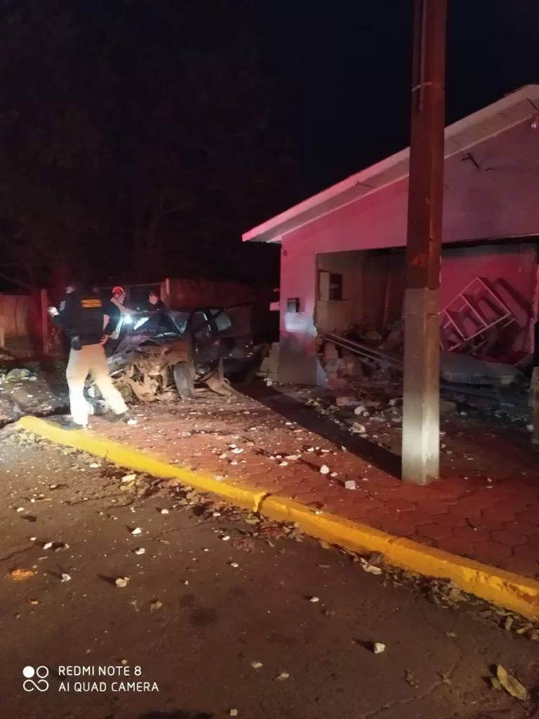 Em dado momento, na região do Mercado Weimann, ao rampar uma lombada, o motorista perdeu o controle da direção e o carro colidiu violentamente contra a fachada de uma igreja, destruindo boa parte da estrutura frontal do templo.