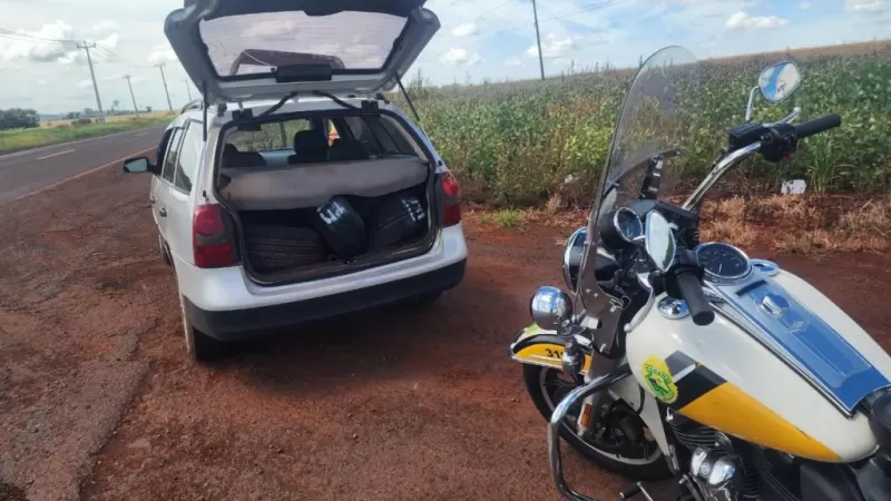 Durante a operação, uma equipe de motociclistas do Batalhão de Polícia Rodoviária, da Polícia Militar do Paraná, abordou um veículo VW Parati.