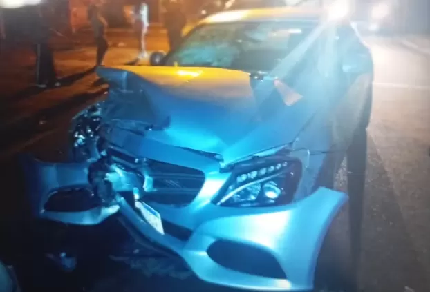 O motorista de um carro de luxo foi preso por dirigir embriagado após bater em um caminhão estacionado no final da madrugada de sábado (25) em Cascavel.