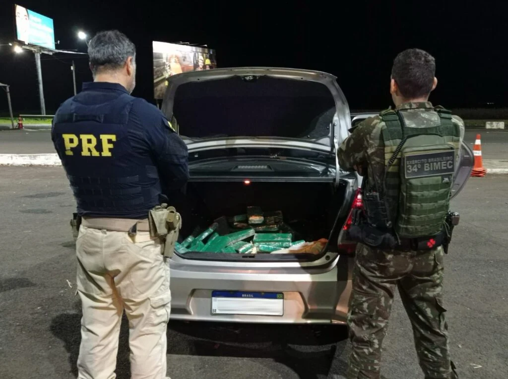 Os dois ocupantes do carro saíram rapidamente para se esconder no matagal ao redor, mas foram encontrados pelas equipes da PRF e do Exército. Dentro do carro os policiais encontraram 55,9 quilos de maconha. Os homens presos não informaram a origem da droga, mas informaram que o material ilícito seria levado para o Rio Grande do Sul.