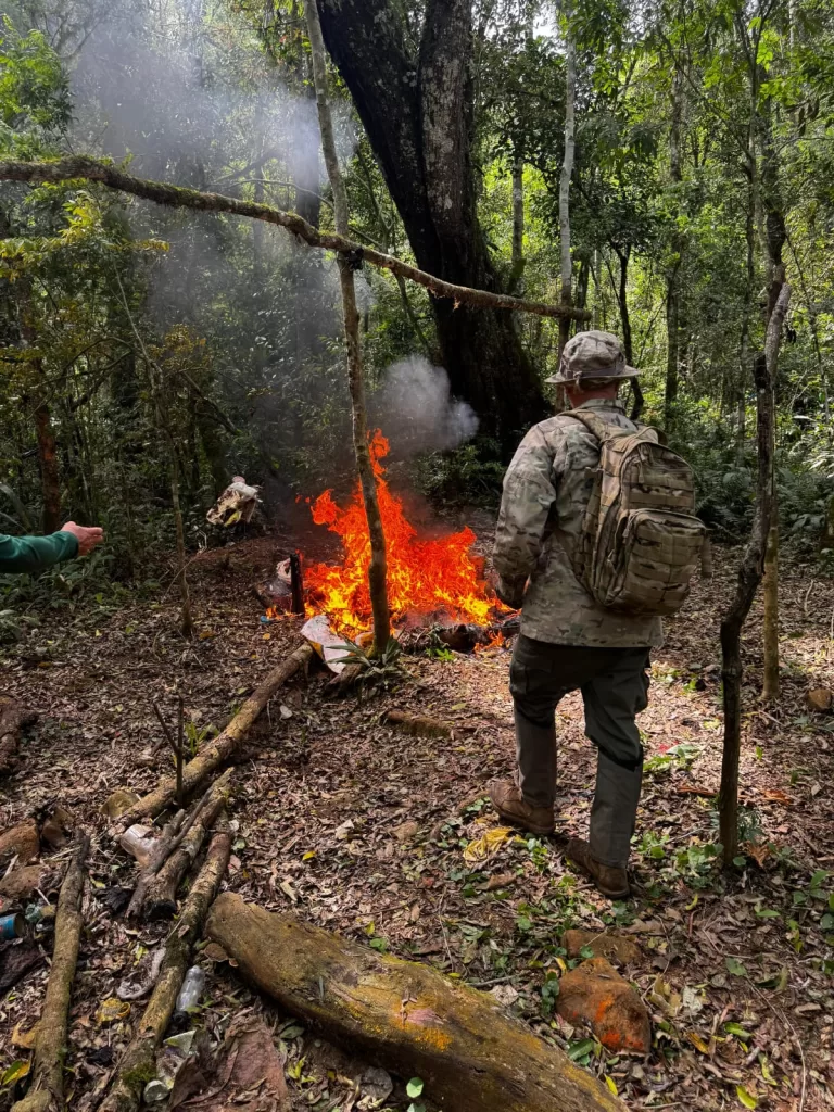Durante todo o dia, a equipe de fiscalização percorreu diversas trilhas e pontos estratégicos com o objetivo de identificar estruturas de apoio utilizadas por caçadores e extrativistas ilegais, coibindo ações que ameaçam a fauna e a flora da área de preservação federal.