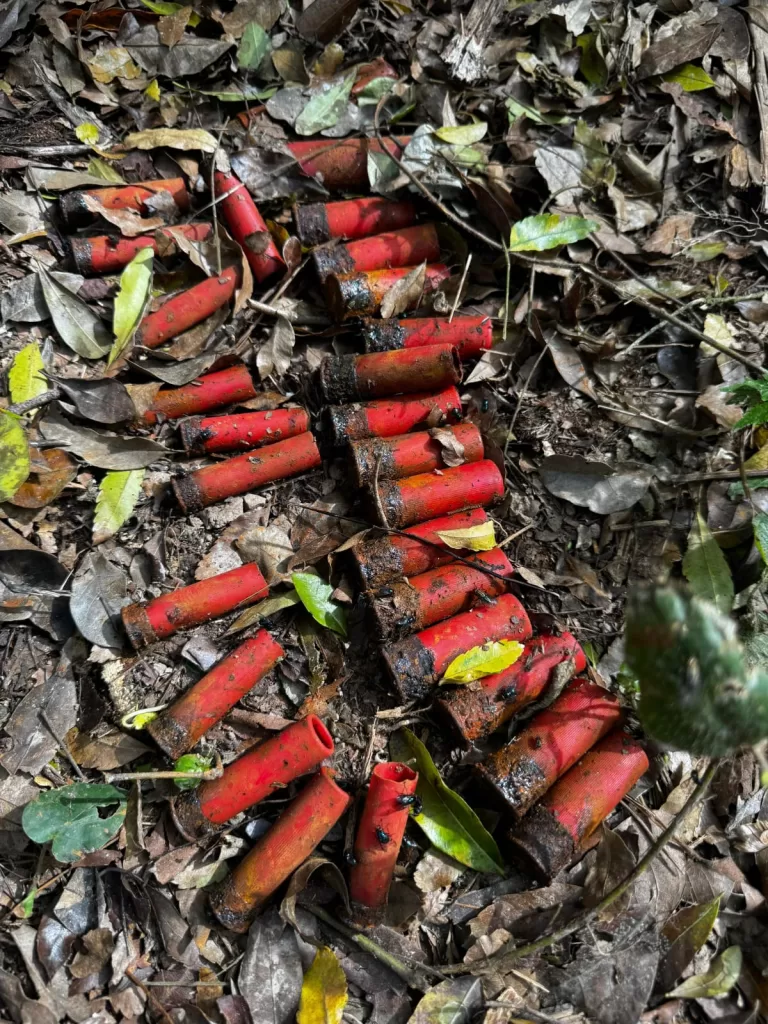 Em um dos acampamentos, os agentes localizaram uma espingarda e diversas munições. Todos os acampamentos e estruturas de caça foram destruídos, a fim de impedir nova utilização para atividades ilícitas.