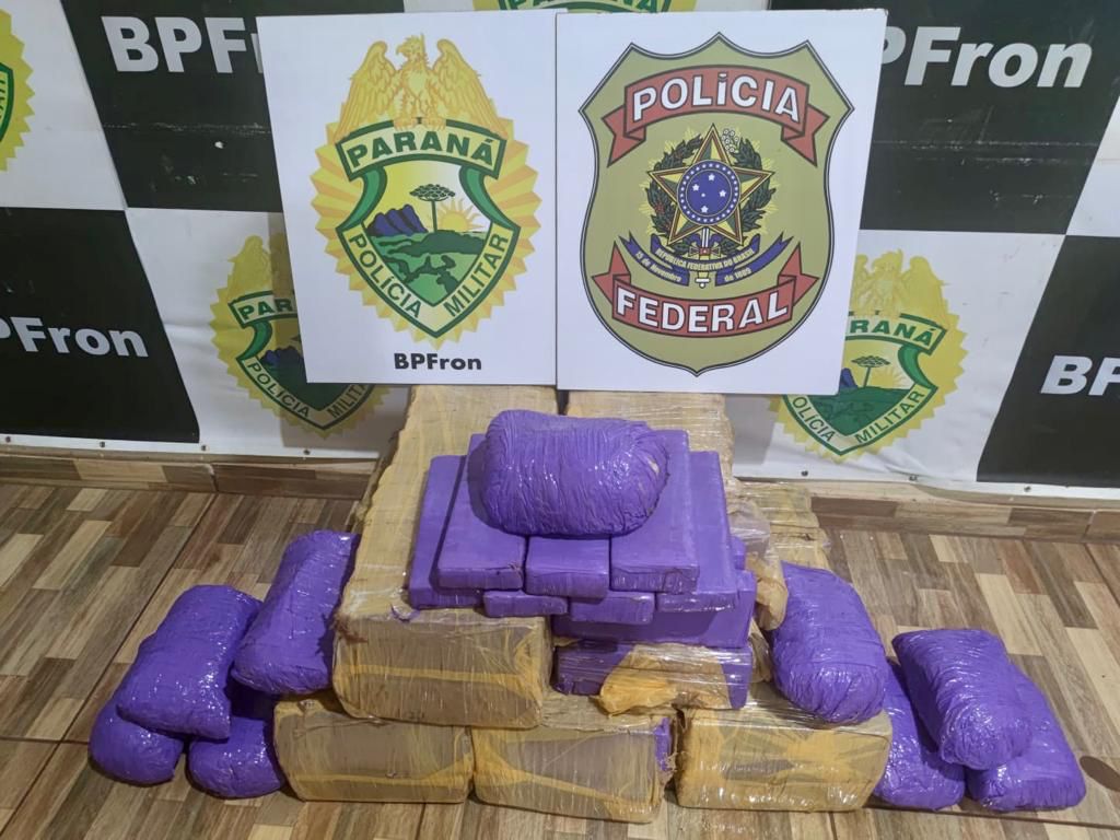 Com a aproximação policial, os indivíduos fugiram pela mata e abandonaram um veículo Renault Sandero carregado com 100,5 kg de substância análoga à maconha e 6,5 kg de substância análoga à maconha do tipo Skunk.