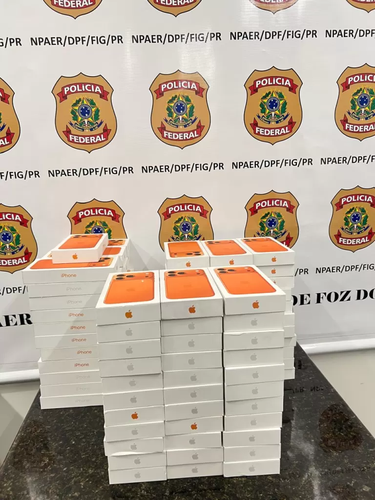 Na inspeção, foram encontrados cerca de 100 aparelhos celulares da marca iPhone, modelo 17 Pro Max, todos sem documentação fiscal. A carga foi avaliada em mais de R$ 1 milhão.