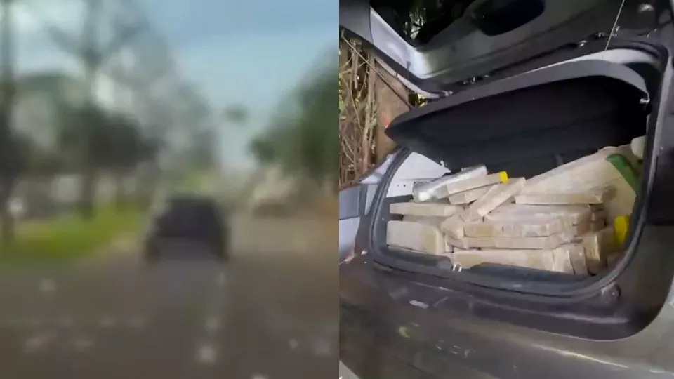 Carro carregado com maconha foi apreendido pela Polícia Rodoviária Federal após perseguição em Toledo, na tarde deste domingo (16).