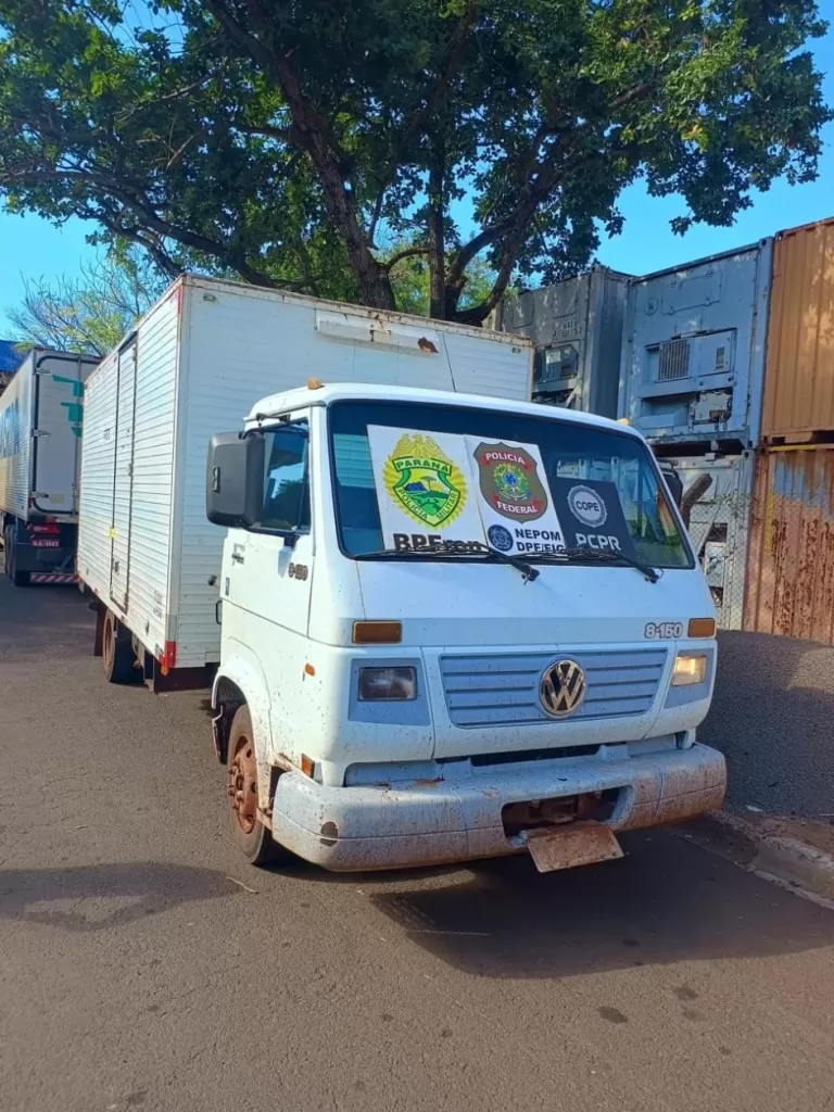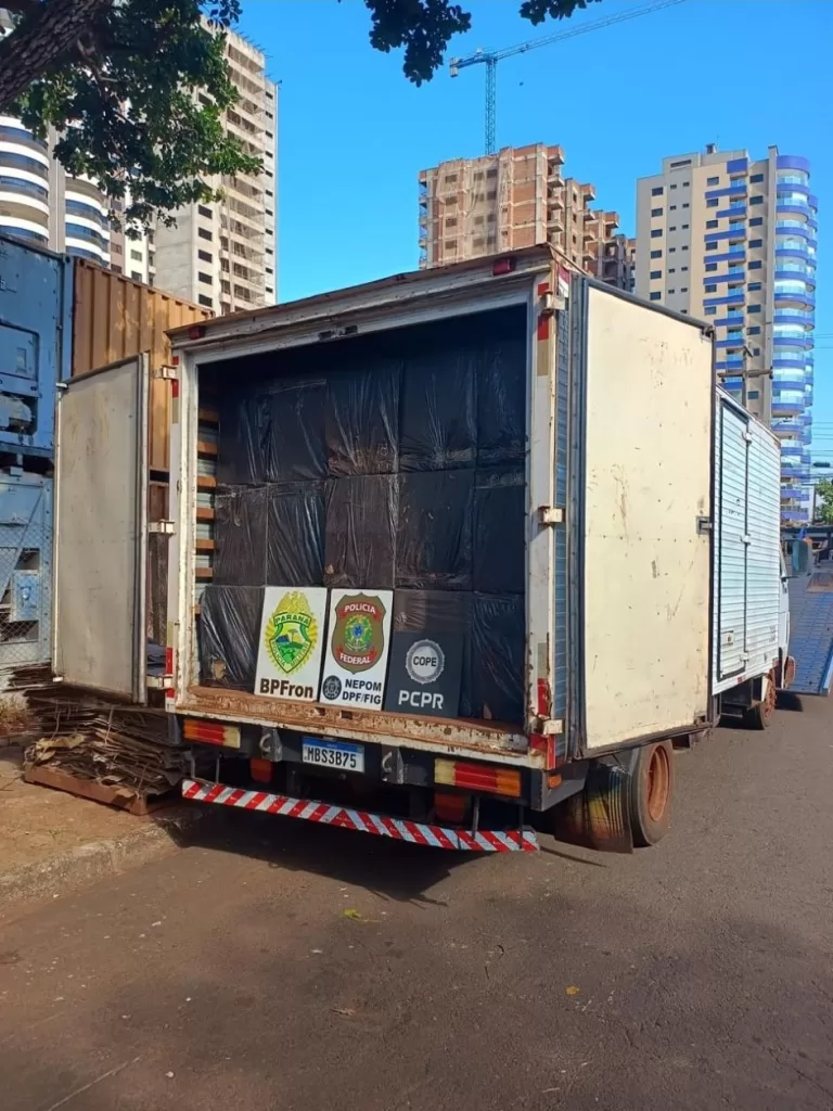 Após a finalização das duas ações policiais, o caminhão, a embarcação e as caixas de cigarros foram levados para a Receita Federal em Foz do Iguaçu.