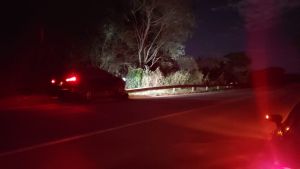 Na madrugada desta quarta-feira (26), equipe integrada por policiais federais e policiais militares do Paraná se depararam com movimentação suspeita na BR-272, em Entre Rios do Oeste, e realizaram aproximação para melhor fiscalização. Quando da tentativa de abordagem policial, os condutores do veículo em questão iniciaram manobras evasivas na via, colocando a vida de pessoas em risco, até invadir a pista contrária e se colidir com o guardrail da ponte do Rio Piquiri, abandonando o veículo e fugindo em seguida pela mata lateral fechada.