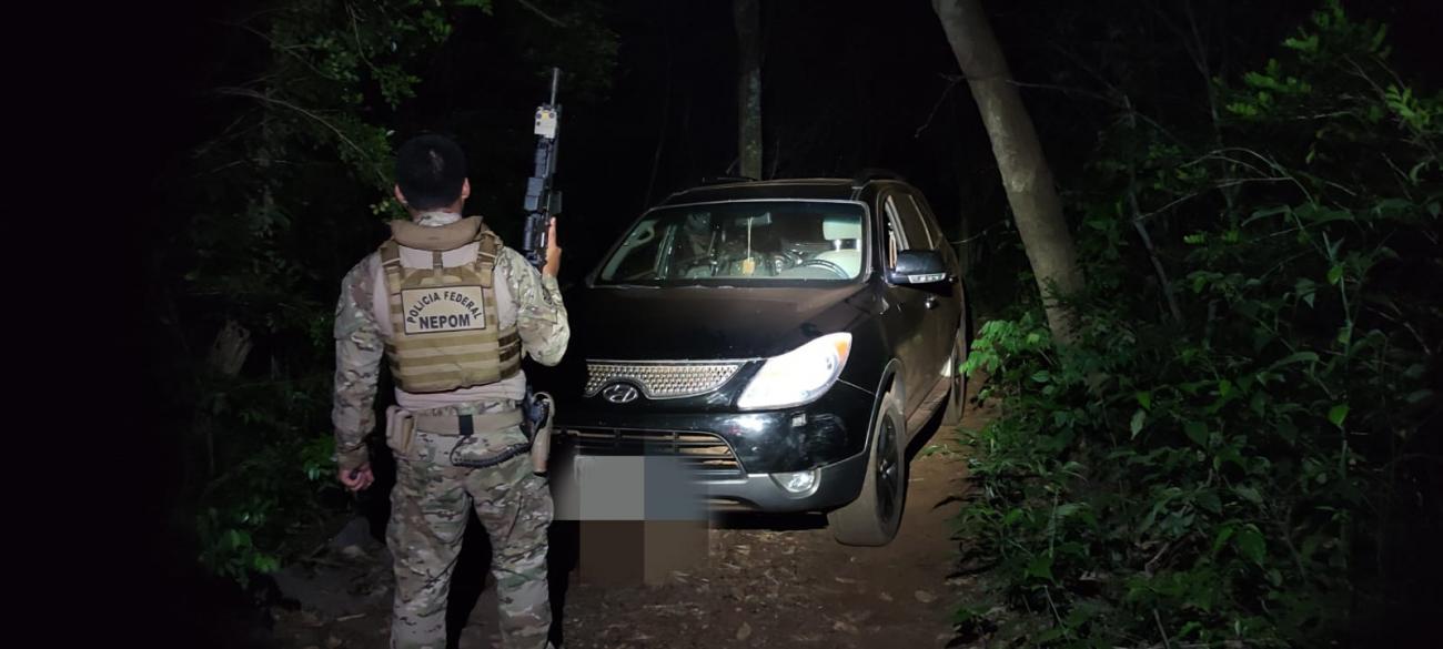 Na noite de quarta-feira (03), durante patrulhamento nas margens do Lago de Itaipu, uma equipe policial visualizou uma movimentação típica de criminosos em um porto clandestino. No local foi localizado um veículo do tipo SUV (Hyundai Santa Fé) preparado para o contrabando abandonado.