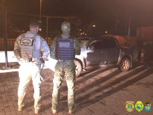 Após tentativa de abordagem, os veículos empreenderam fuga em alta velocidade. Na sequência dois veículos foram abandonados às margens da rodovia, cujos elementos fugiram em meio à mata local, não sendo encontrados. Os veículos se estavam totalmente carregados com cigarros contrabandeados.