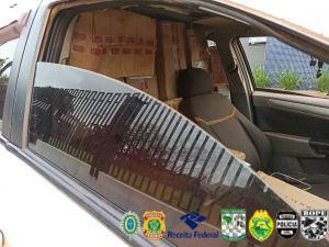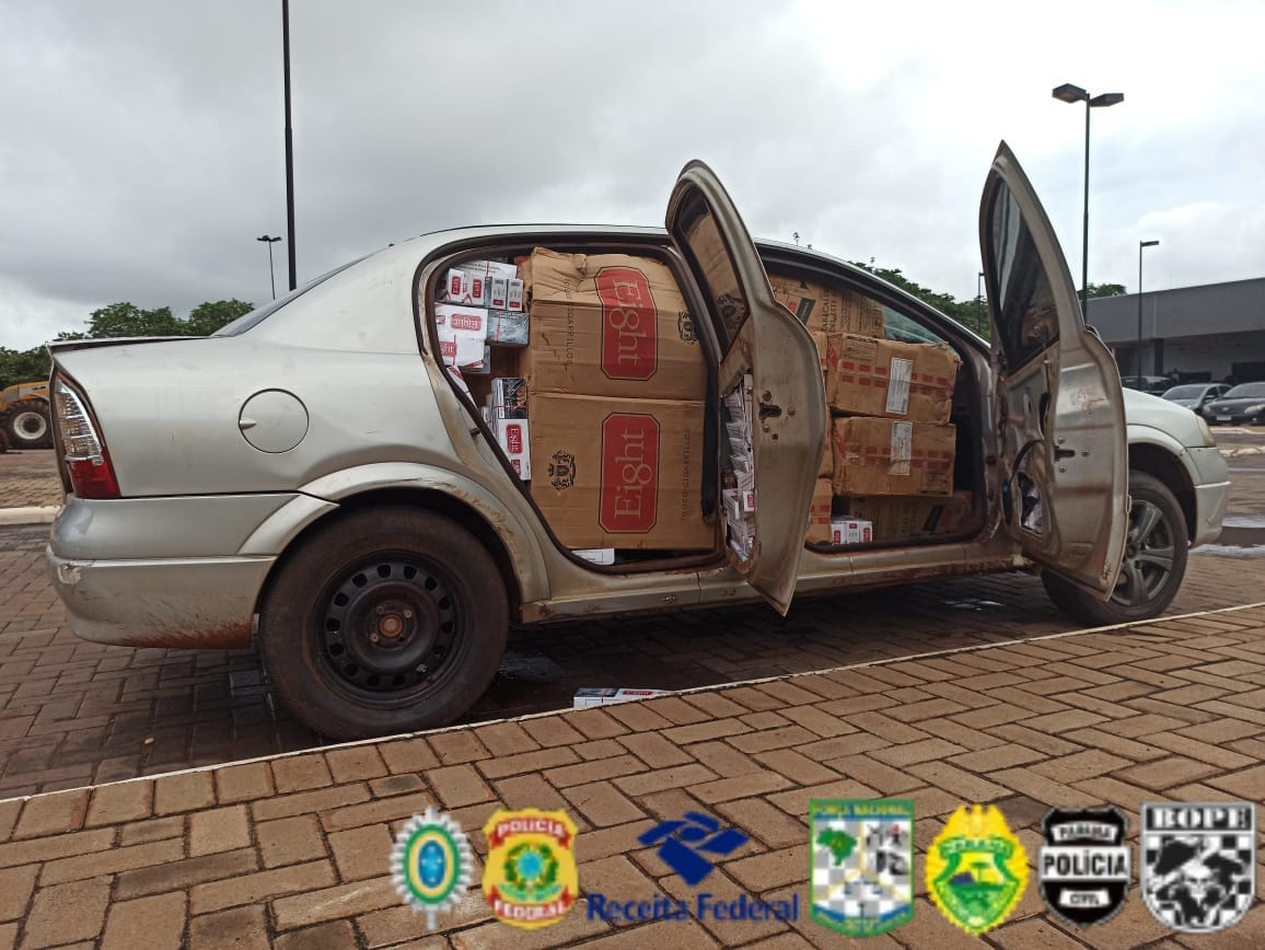 A eficiente ação policial conjunta entre PF e BPFron da PM-PR resultou na apreensão de um GM/Astra e um GM/Vectra carregados com em torno de 80 caixas de cigarros paraguaios, acarretando em um prejuízo aproximado de R$ 250 mil ao crime organizado da região.