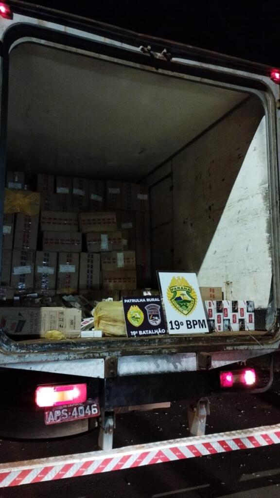 Na sequência, os policiais encontraram cerca de 500 caixas de cigarro da marca Eight, oriundas do Paraguai, no interior da baú. A mercadoria e o veículo foram entregues no pátio da Receita Federal em Guaíra.