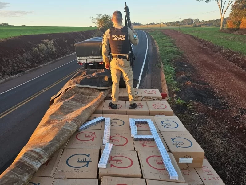No caminhão, os policiais encontraram 15.000 pacotes (300 caixas) de cigarros paraguaios.