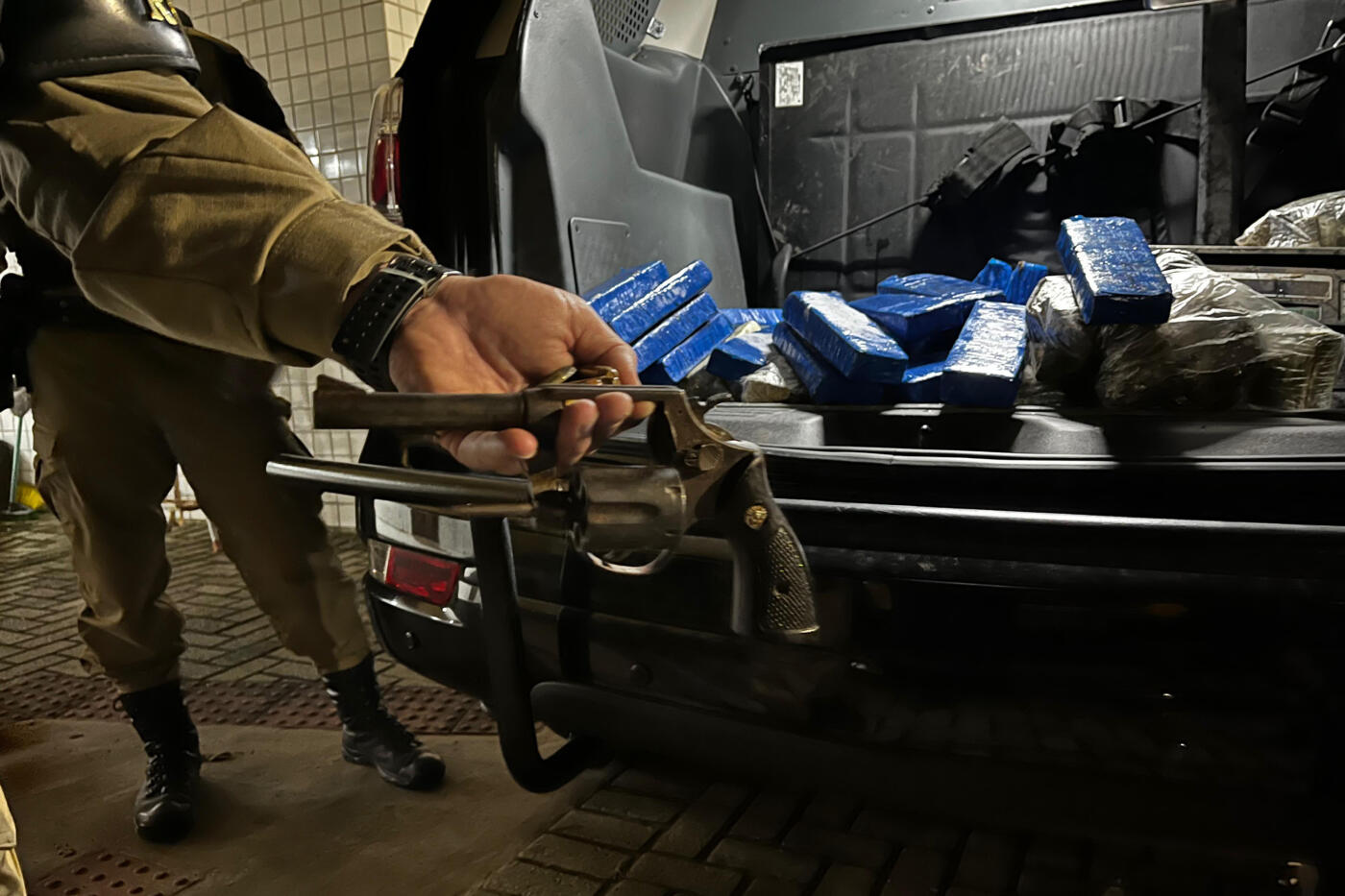 A Polícia Militar do Paraná (PMPR) prendeu três homens e apreendeu 35 quilos de maconha, um revólver calibre 38 e balanças de precisão em uma operação realizada na Vila dos Comerciários, em Paranaguá, no Litoral do Estado, na noite desta quarta-feira (8).