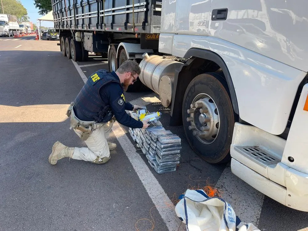 A Polícia Rodoviária Federal (PRF) apreendeu 85 quilos de cocaína escondidos no painel de um caminhão. O caso aconteceu na tarde de terça-feira (23), na BR-277, em Foz do Iguaçu.