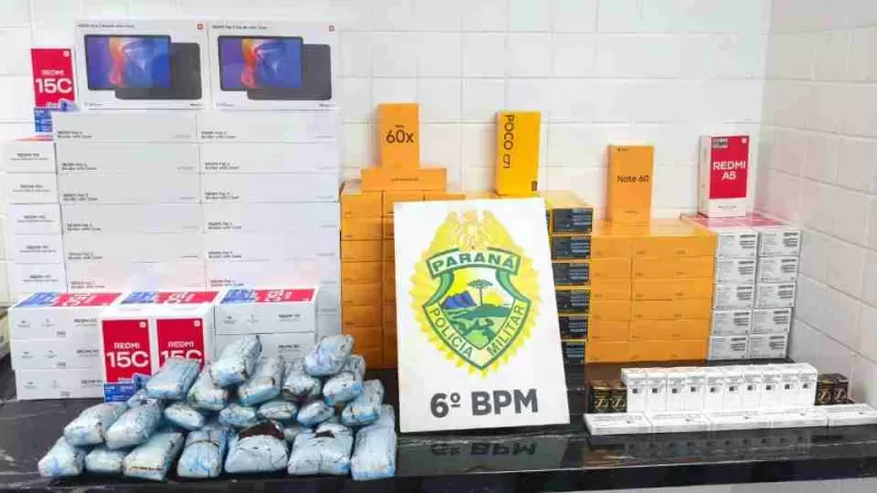 Ação da Polícia Militar (PM) resultou na apreensão de drogas e uma grande quantidade de eletrônicos de origem estrangeira na tarde desta segunda-feira (26), na Rodoviária de Cascavel, no Centro da cidade.