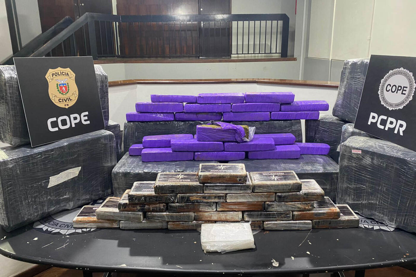 A Polícia Civil do Paraná (PCPR) apreendeu 275 quilos de drogas e prendeu um homem, de 33 anos, em flagrante pelo crime. Com ele, os policiais encontraram 25 quilos de cocaína e 250 quilos de maconha que estavam sendo transportados em um veículo.