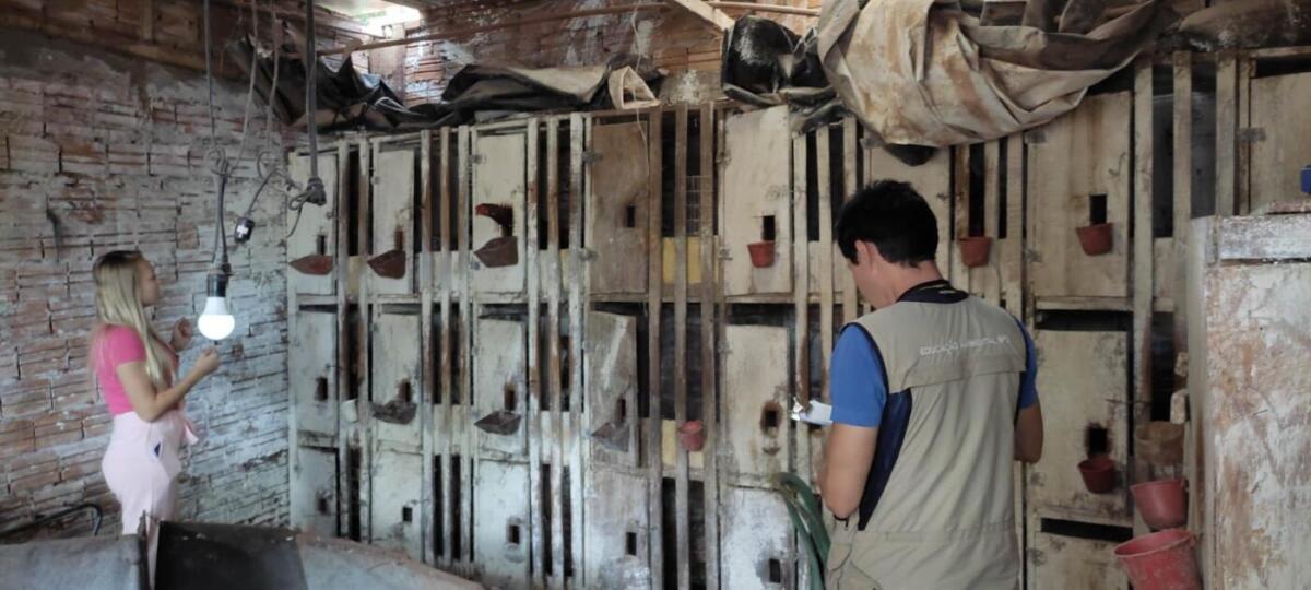 As equipes encontraram no local aproximadamente 80 aves, das quais quase 70 são galos destinados à participação em “rinhas”.