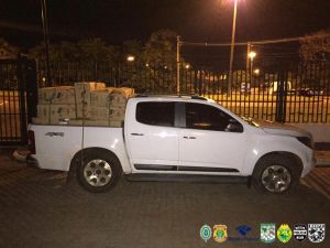 A ação entre Polícia Federal, BPFron e Polícia Militar resultou na apreensão de uma Hyundai Santa Fé e uma Chevrolet S10 carregadas com aproximadamente 150 caixas de cigarros contrabandeados, acarretando um prejuízo total aproximado de R$ 550 mil ao crime organizado.