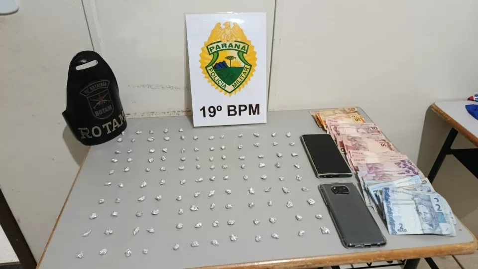 Outros dois homens também estavam na residência. Um deles, de 50 anos, assumiu ser o proprietário do imóvel e indicou aos policiais mais 69 pedras de crack escondidas sobre uma viga entre a sala e o quarto.