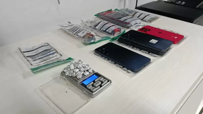 Durante a revista, foram encontrados 34 pedras de crack dentro de um saco plástico, além de R$ 757 em dinheiro distribuídos entre os envolvidos. No veículo, os policiais localizaram ainda uma chave de fenda e equipamentos eletrônicos de desbloqueio veicular, conhecidos como decodificadores, utilizados em furtos de caminhonetes, especialmente de modelos Hilux e SW4.