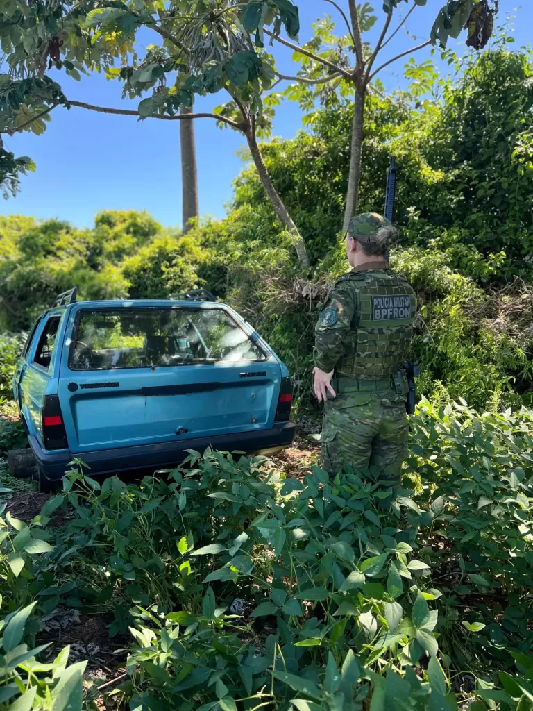 Na situação, os policiais obtiveram informações de um veículo VW Parati, que havia sido furtado na sexta-feira (26), também em Guaíra, de modo que iniciaram patrulhamento em toda região, inclusive área rural, quando logrou êxito em encontrar o carro, que estava numa área de plantio.