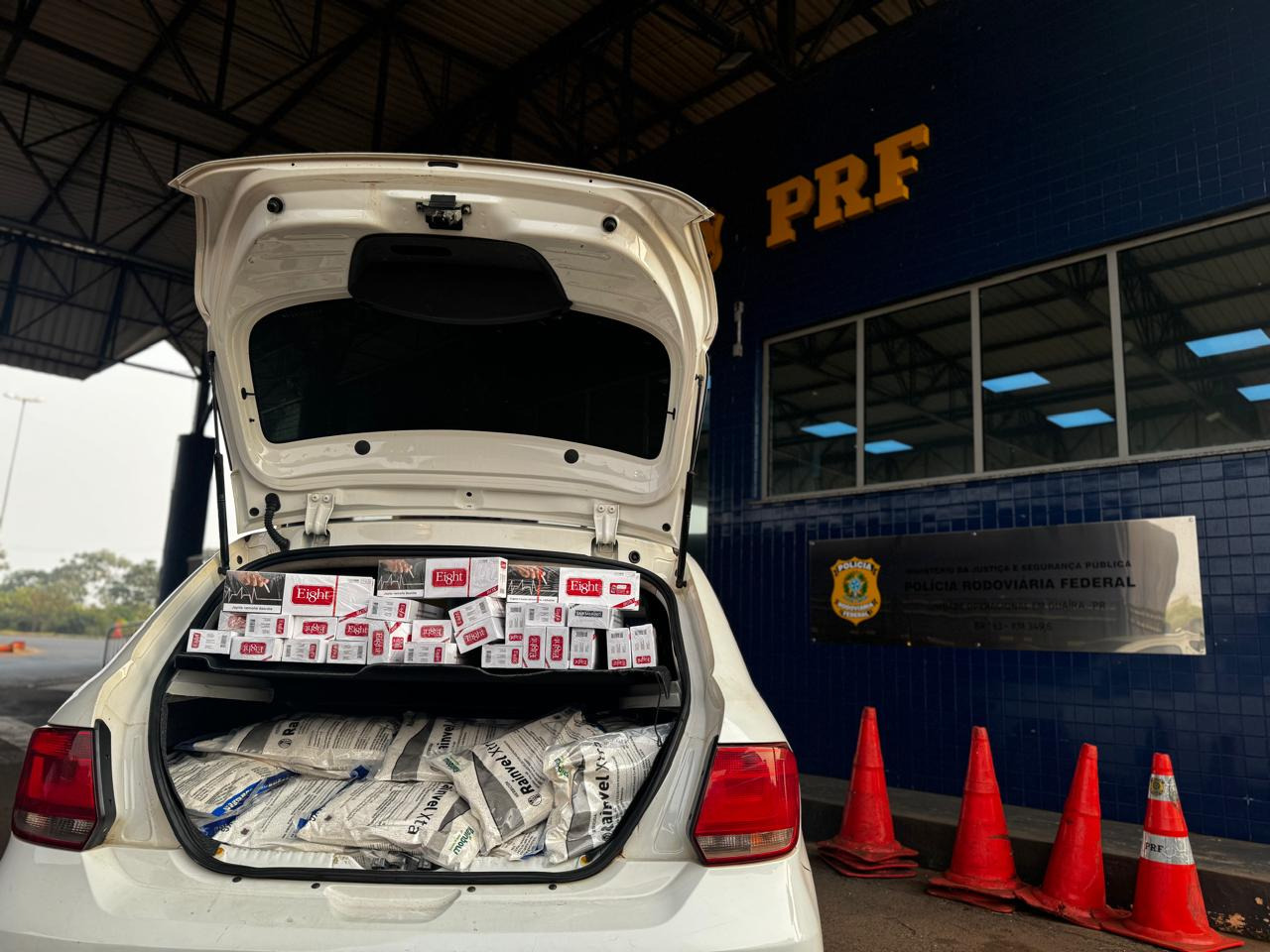 Na manhã desta terça-feira (4), agentes da Polícia Rodoviária Federal (PRF) realizaram uma importante ação que resultou na apreensão de uma grande quantidade de produtos contrabandeados no município de Guaíra. A ocorrência teve início por volta das 7h30, quando a equipe da PRF, que estava posicionada em frente à unidade operacional no quilômetro 350,0 da BR-163, deu ordem de parada a um veículo VW Gol branco, placas de Telêmaco Borba/PR.