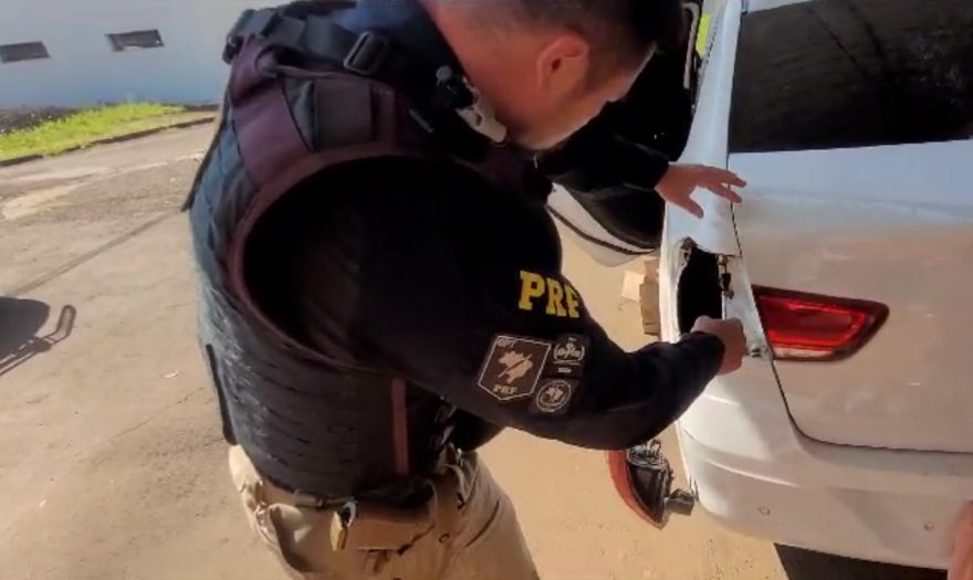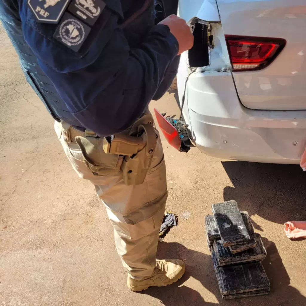 Policiais rodoviários federais avistaram o carro com a lanterna traseira quebrada. Durante a fiscalização, os agentes descobriram que a lanterna quebrada escondia o fundo falso onde estavam 29 quilos de cocaína.
