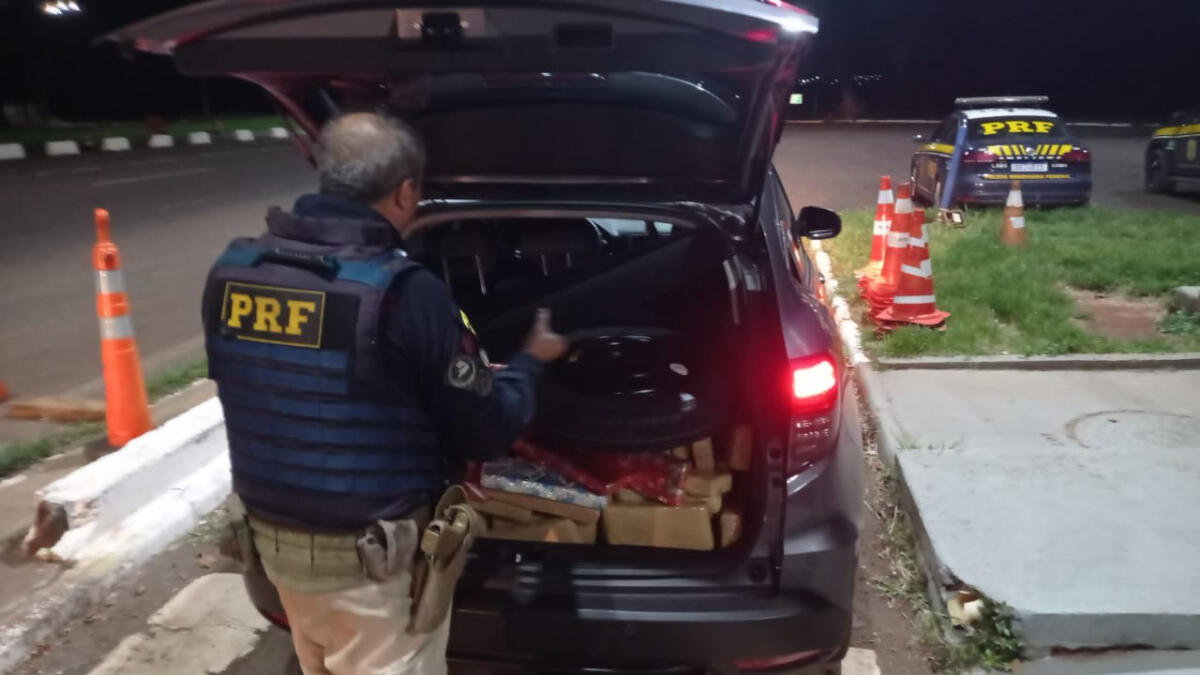 A Polícia Rodoviária Federal (PRF) apreendeu 805 quilos de maconha em um intervalo de três horas, em duas ocorrências distintas no fim da noite desta quinta-feira (26) e o início da madrugada desta sexta-feira (27). As cargas da droga foram encontradas em um caminhão, misturada em meio a um carregamento de soja, e em um carro de passeio, após uma tentativa de fuga.