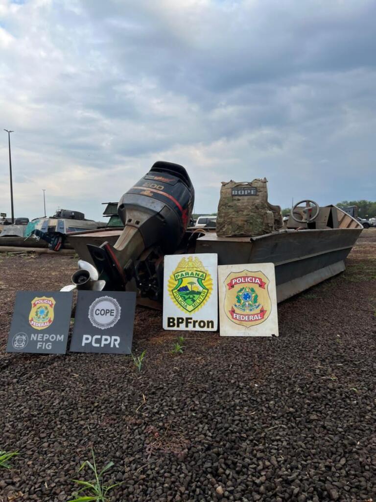 Policiais militares do Batalhão de Polícia de Fronteira (BPFron) e do Batalhão de Operações Policiais Especiais (Bope) da Polícia Militar do Paraná, em ação integrada com policiais civis do Cope e policiais federais, apreenderam, na noite de segunda-feira (5), na região de Vila Celeste, no município de Santa Helena, uma embarcação gala de nove metros de comprimento, equipada com motor 200HP, que fazia a travessia do Paraguai para o Brasil carregada com 1.861kg de substância análoga à maconha.