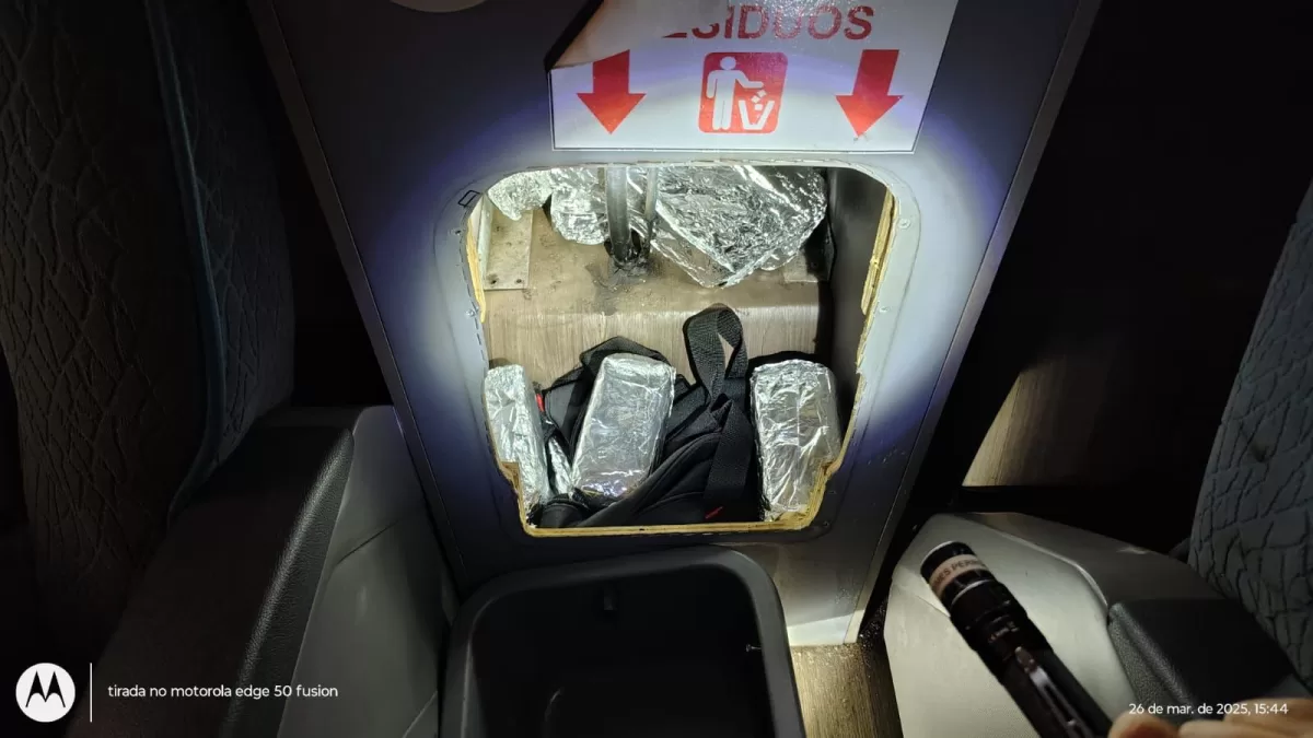 Mas em uma vistoria mais detalhada, foram localizados dois fundos falsos. No primeiro, dentro do bebedouro do ônibus, estavam dezenas de iPhones 16 Pro Max, iPads Pro e celulares recondicionados. O segundo fundo falso foi encontrado no duto de ar da cabine do motorista com mais eletrônicos escondidos.