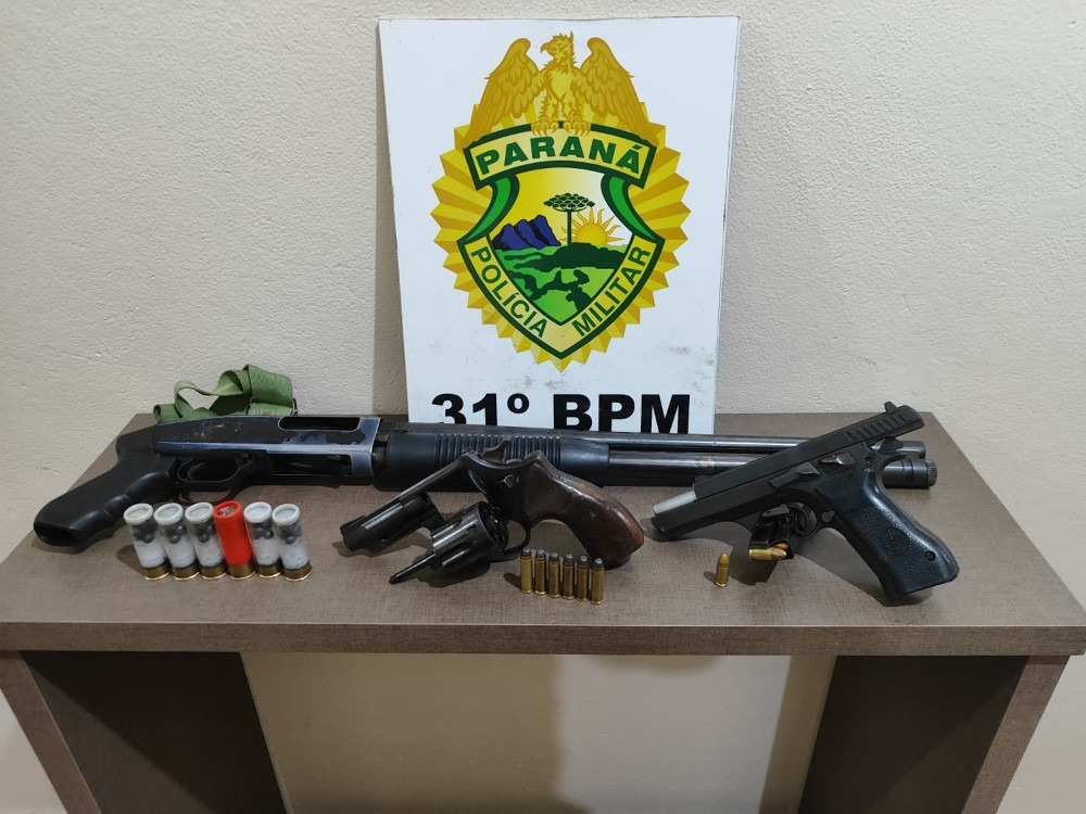 Na quinta-feira (22), durante patrulhamento pelo Jardim União, em Palotina, Policiais Militares visualizaram dois homens saindo de uma residência que, segundo informações, seria ponto de tráfico e depósito de armas.