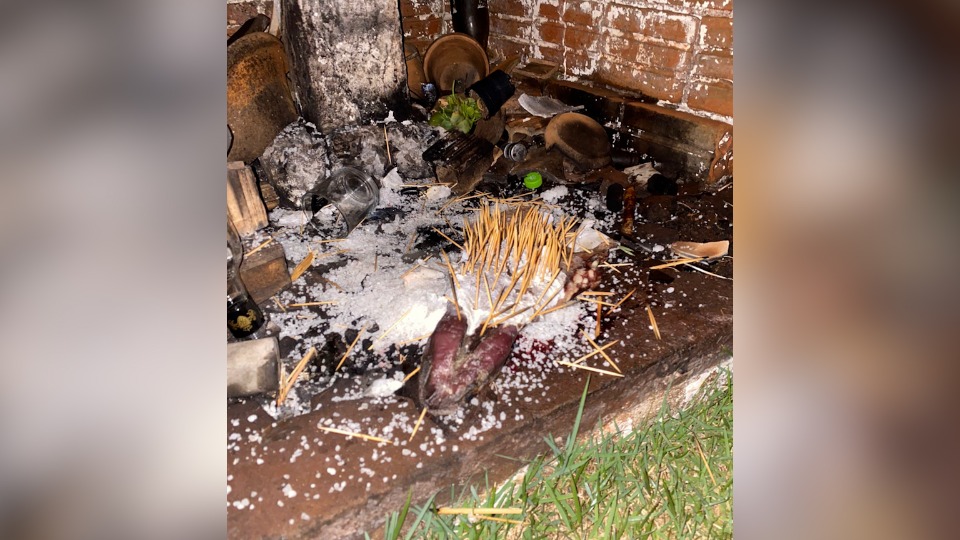 Nas imagens é possível ver que o cemitério do local vem sendo utilizado para a realização de rituais envolvendo animais mortos em cima de lápides, facas e até restos mortais.