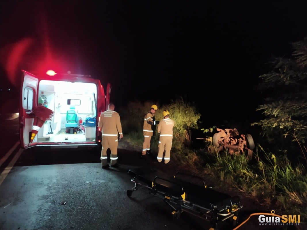 De acordo com relatos obtidos no local, um veículo VW/Santana seguia no sentido São Miguel à Vila Ipiranga quando o condutor perdeu o controle da direção, resultando em uma saída de pista seguida de colisão em um obstáculo (toco de árvore) à margem da rodovia. O veículo acabou capotando.