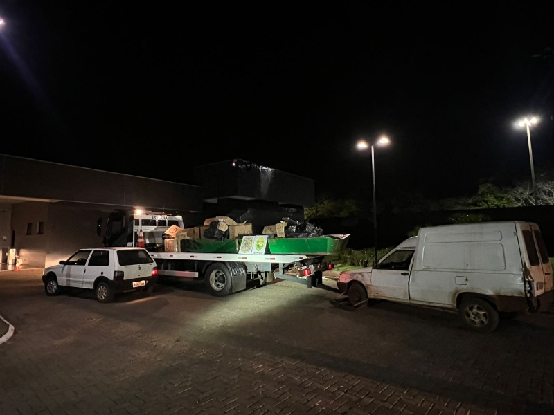 Ao todo, durante as diligências, os policias apreenderam vários veículos, sendo Fioriono, uma van Mercedes-Benz, uma Montana, uma picape Fiat/Strada, um Fiat/Uno e uma Saveiro furgão, além de um barco com motor e 250 caixas de cigarros.
