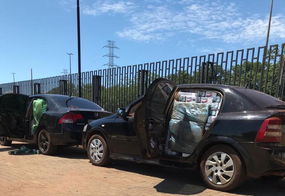 Os carros estavam carregados com pacotes de cigarros contrabandeados.