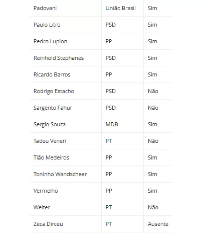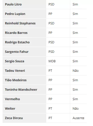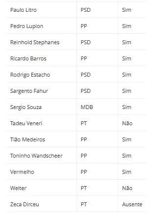 A bancada paranaense deu 18 votos pela aprovação da PEC e 11 votos contrários, com uma abstenção.