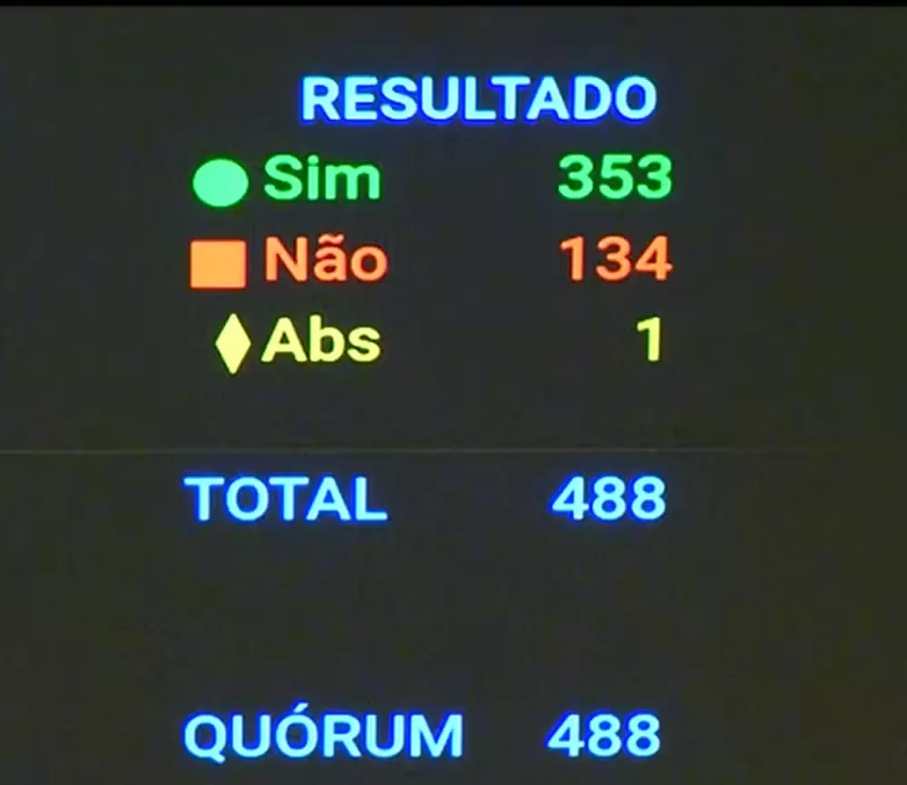 No 1º turno, foram 353 votos a favor e 134 votos contrários. Houve uma abstenção. Eram necessários 308 votos para a aprovação. No 2º turno, o placar foi de 344 a 133.