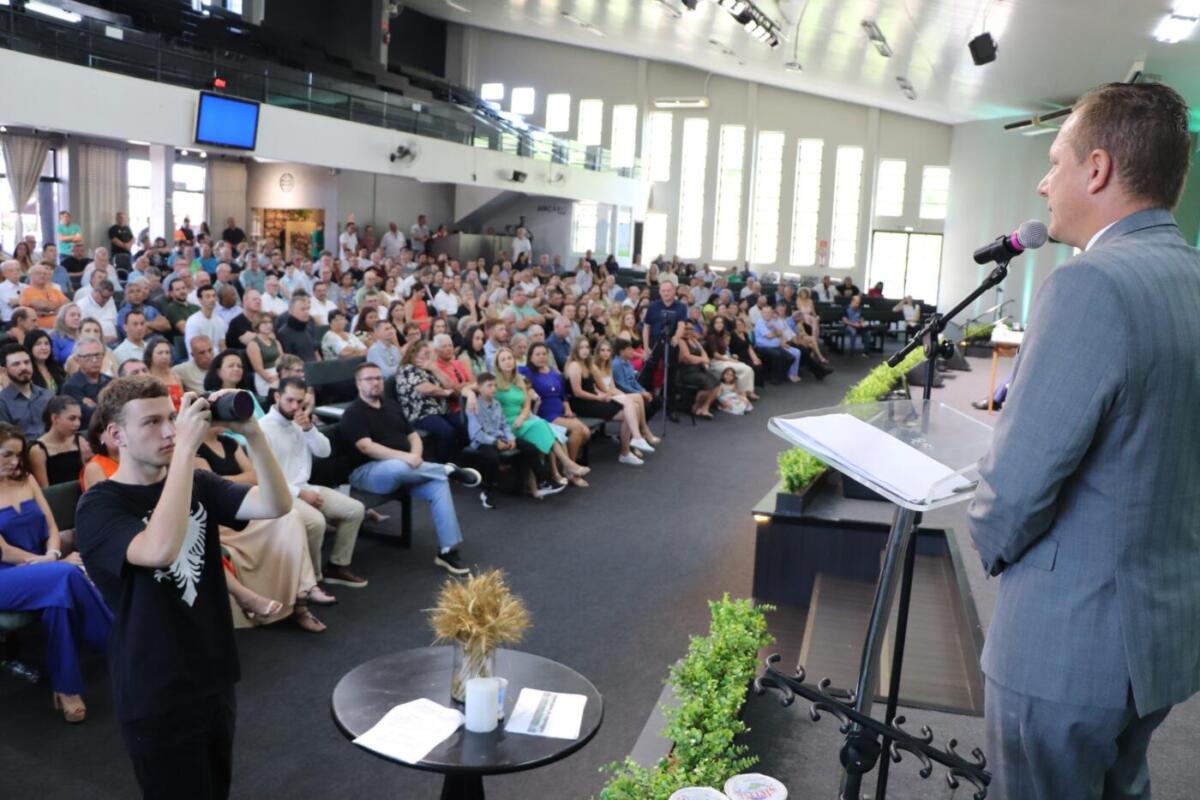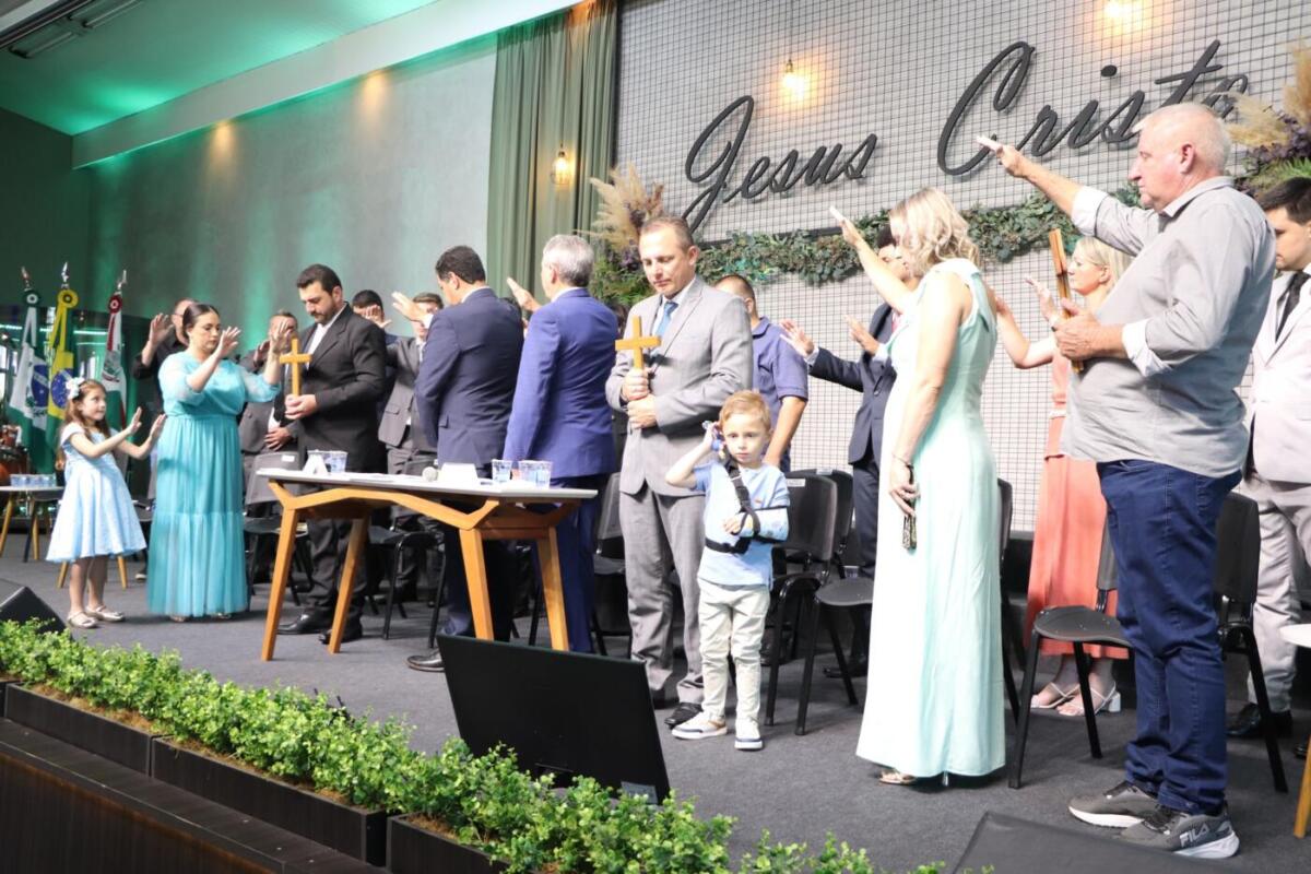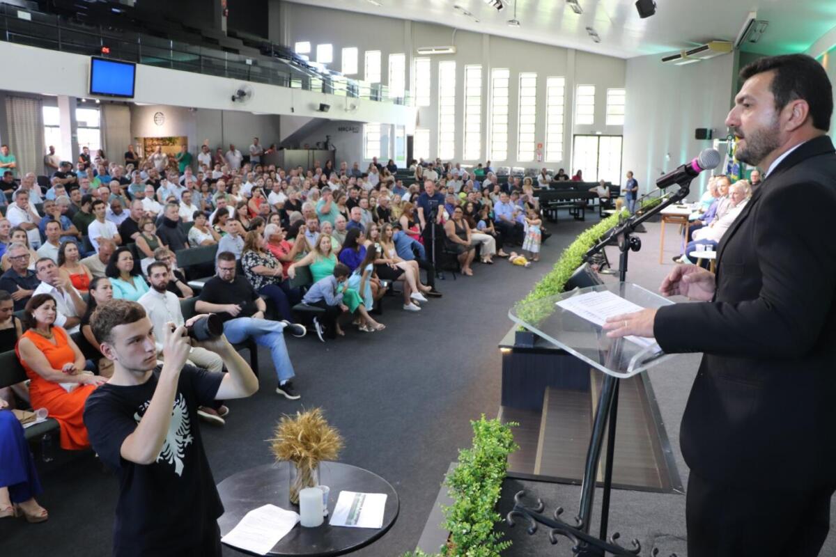O auditório Ecos da Liberdade, da Igreja de Deus, foi palco, nesta quarta-feira, dia 1º de janeiro, da posse do prefeito eleito de Marechal Cândido Rondon, Adriano Backes, e do vice-prefeito Vanderlei Sauer.