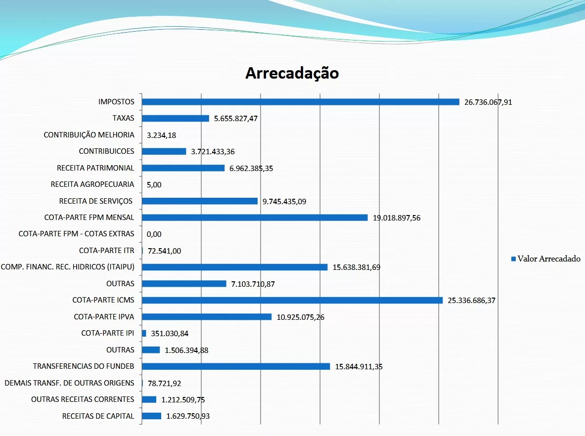 De janeiro a abril de 2025, a arrecadação consolidada do município de Marechal Cândido Rondon alcançou R$ 151.543.000,78. Este valor é maior do que havia sido previsto pelo orçamento para o período: R$ 137.606.136,40.