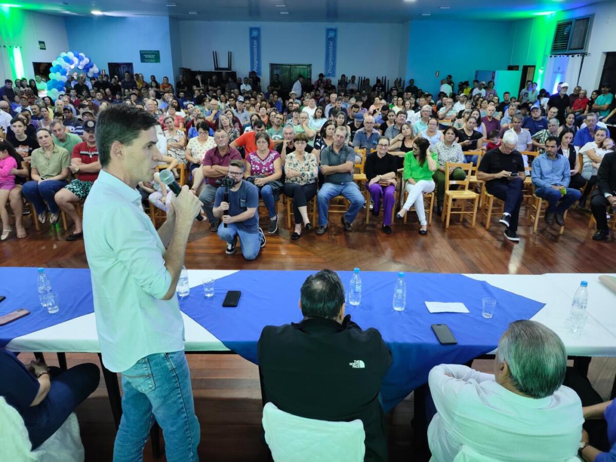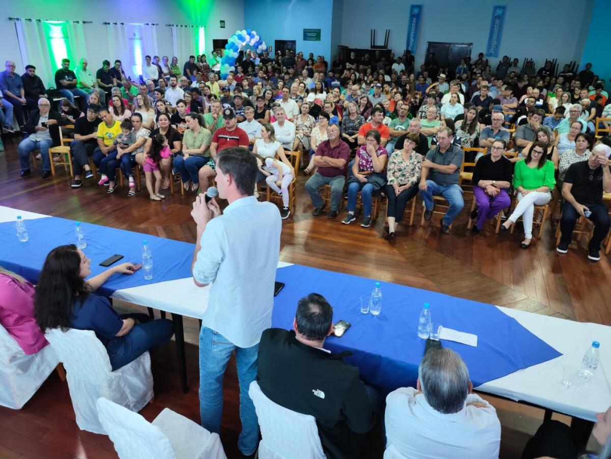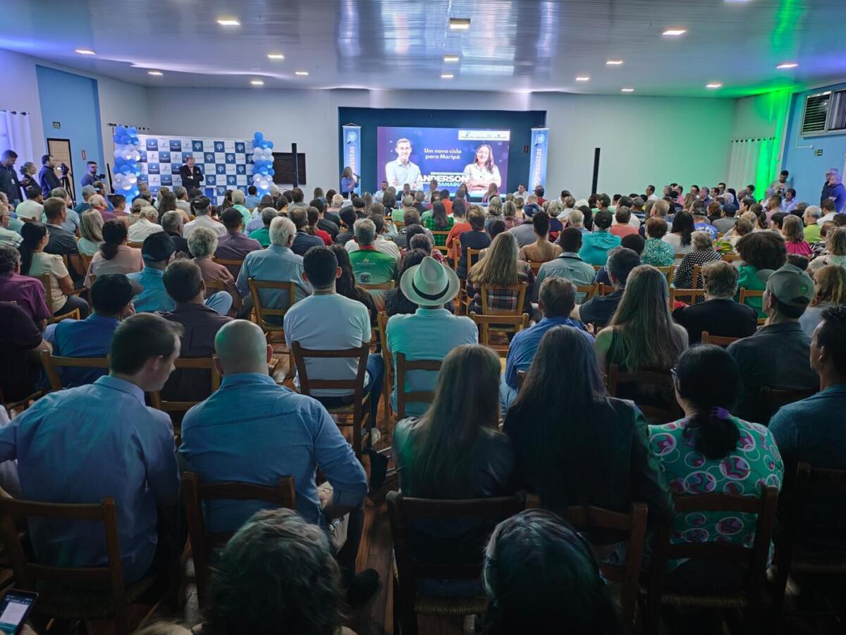 O Clube Crema de Maripá ficou pequeno para o lançamento das pré-candidaturas de Anderson Bento Maria e Janaína Müller Geraldi, aos cargos de prefeito e vice-prefeita, respectivamente. O evento aconteceu na noite de sexta-feira (5) e foi prestigiado por centenas de pessoas.