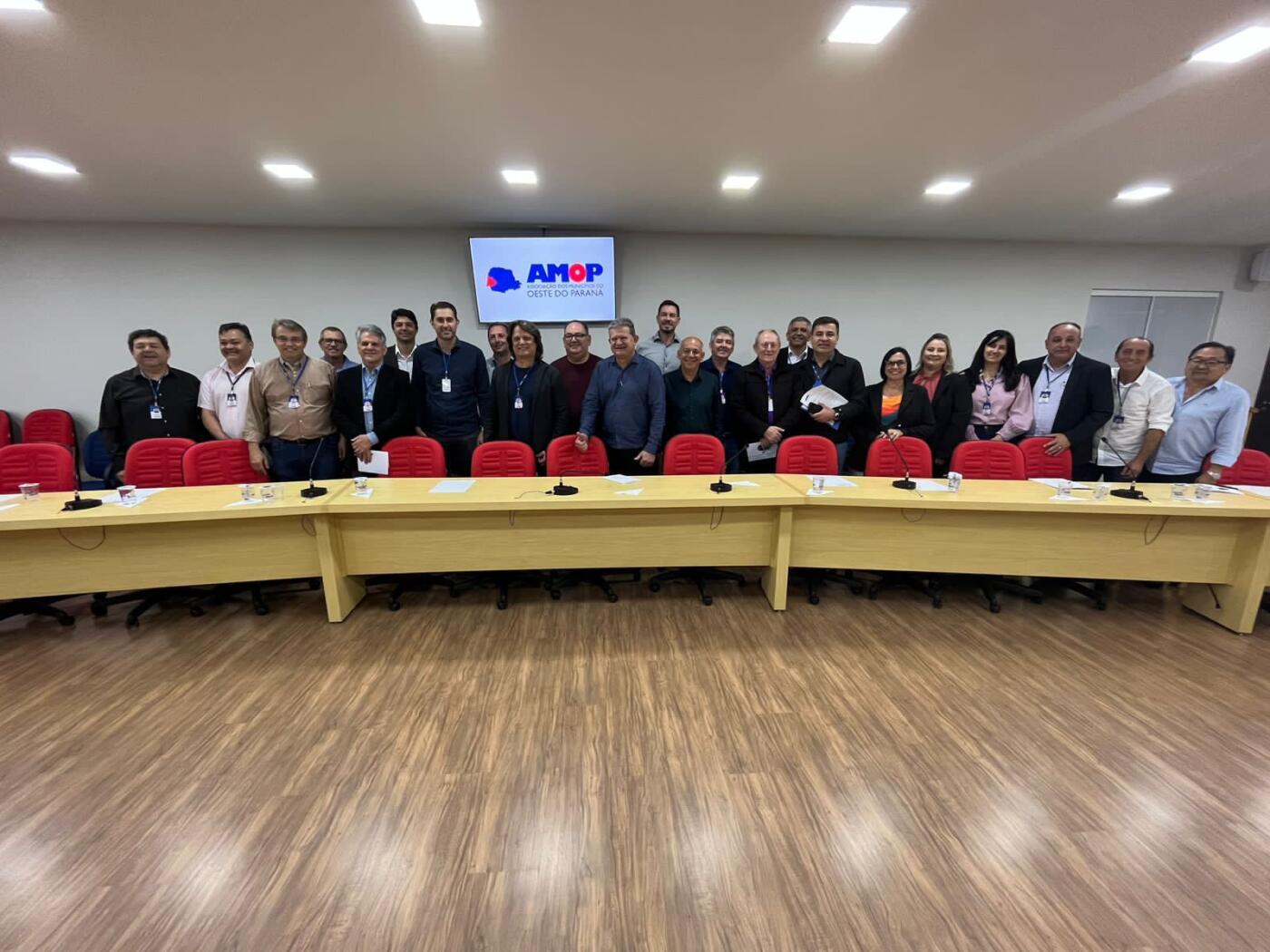 A reunião foi liderada pelo presidente da Amop e prefeito de Santa Tereza do Oeste, Elio Marciniak, o Kabelo, ladeado pelo 1º vice-presidente da entidade e prefeito de Toledo, Beto Lunitti, e pelo 2º vice-presidente e prefeito de Marechal Cândido Rondon, Marcio Andrei Rauber. O presidente da Associação dos Municípios do Paraná (AMP) e prefeito de Jesuítas, Júnior Weiller, também compôs a mesa de honra.