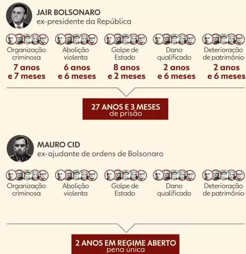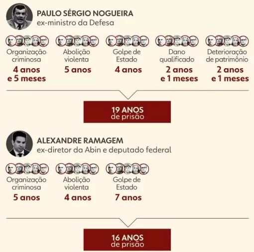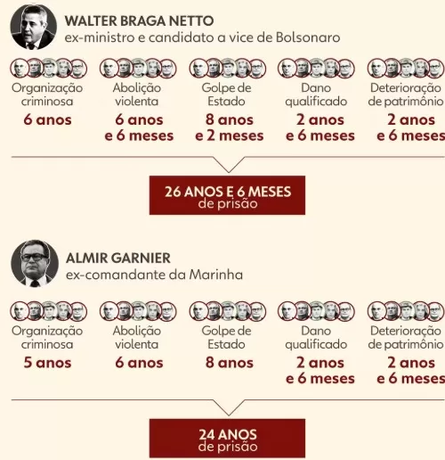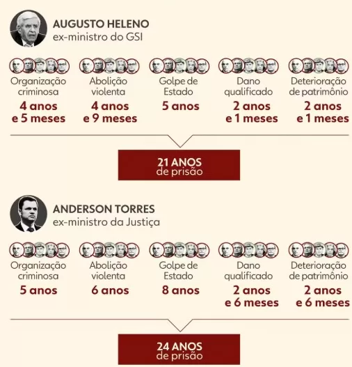 As penas dos condenados pela trama golpista