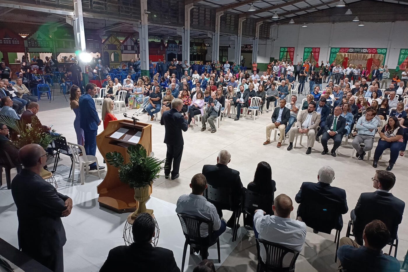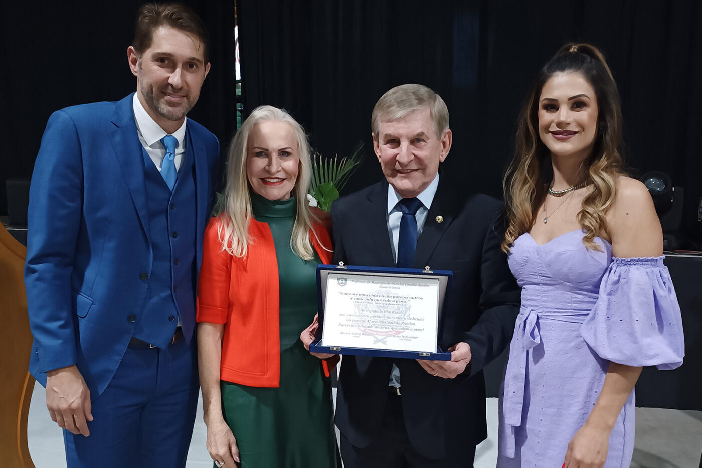 O deputado estadual Elio Rusch foi homenageado na noite de quinta-feira (21), na abertura oficial da Expo Rondon 2022, festa alusiva aos 62 anos de emancipação político-administrativa de Marechal Cândido Rondon.