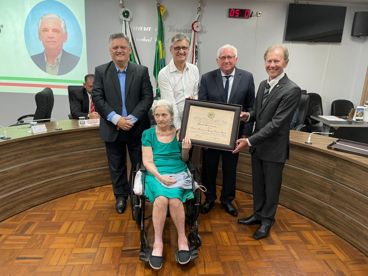 O Poder Legislativo de Marechal Cândido Rondon realizou na noite de sexta-feira (16), a 4ª sessão solene do ano, para agraciamento póstumo e entrega de títulos de Cidadania Honorária. Foram homenageados Emílio Berwanger e Helvino Genz (popular “Gaúcho”), ambos falecidos neste ano.