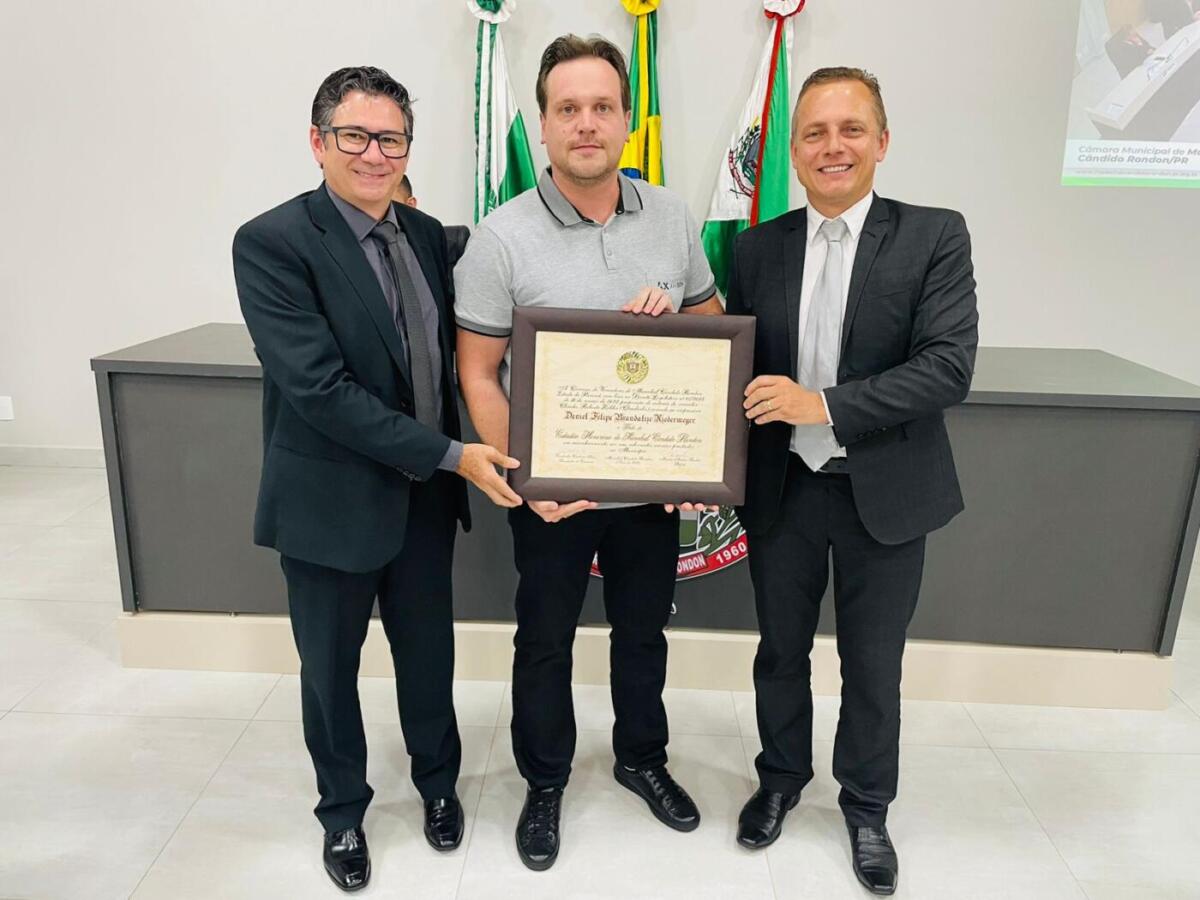 A Câmara de Vereadores de Marechal Cândido Rondon realizou, na noite de segunda-feira (9) a solenidade para entrega de título de “Cidadão Honorário” ao empresário Daniel Felipe Brandalize Niedermeyer, o Felipe Allmayer, como é mais conhecido.
