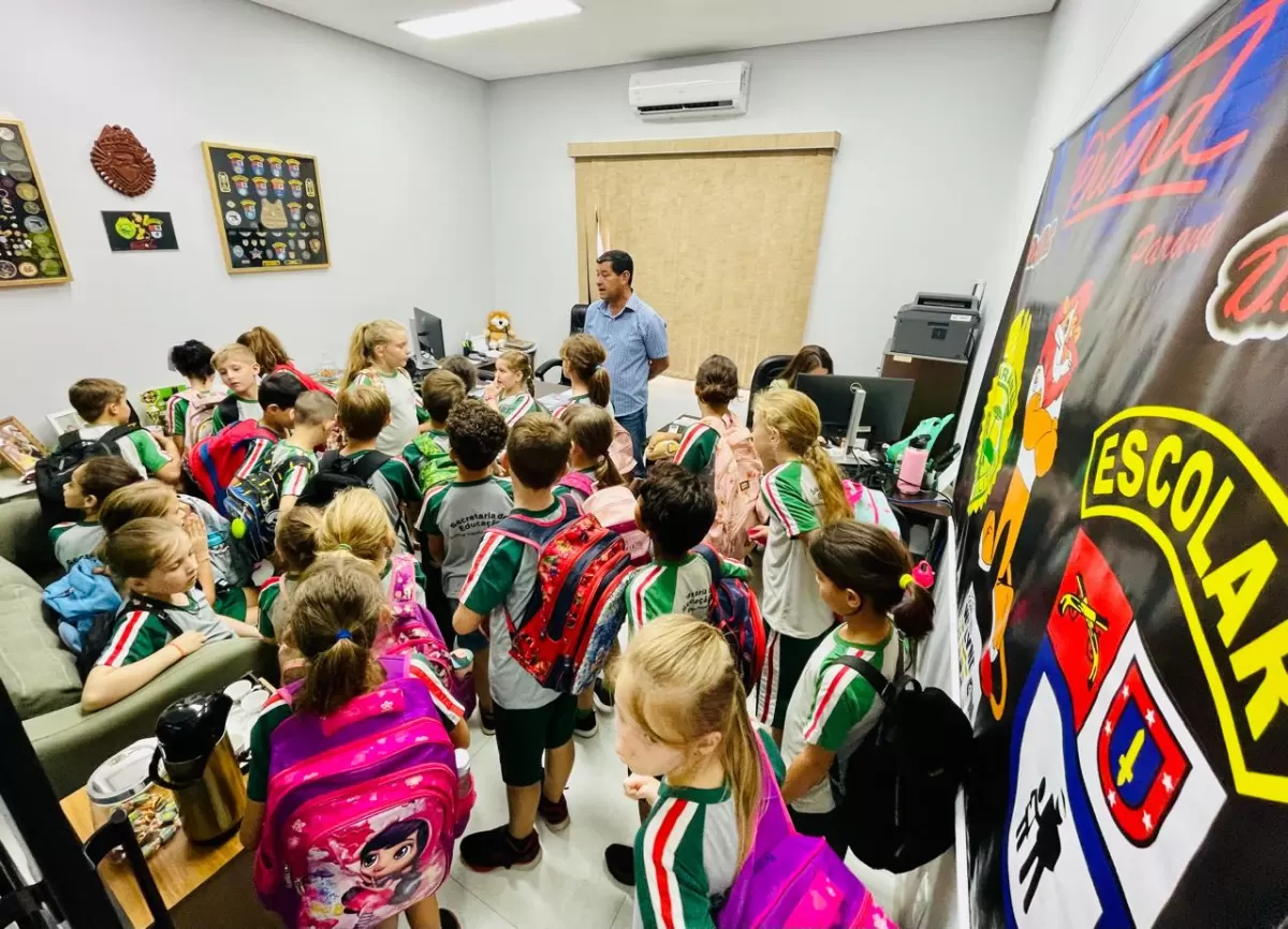 Os visitantes foram recepcionados pelos vereadores presidente Valdir Sachser, Coronel Welyngton, Tania Maion e Carlinhos Silva, além de assessores e servidores. Na oportunidade, além de conheceram a sede do Poder Legislativo, os alunos também aprenderam sobre as principais atribuições dos parlamentares.